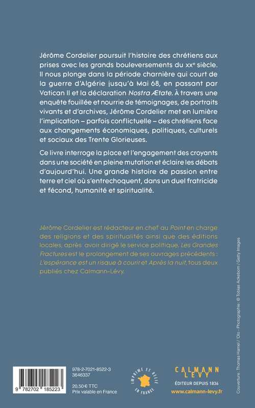 Il nous plonge dans la période charnière qui court de la guerre d’Algérie jusqu’à Mai 68, en passant par Vatican II et la déclaration Nostra Ætate. À travers une enquête fouillée et nourrie de témoignages, de portraits vivants et d’archives, Jérôme Cordelier met en lumière l’implication – parfois conflictuelle – des chrétiens face aux changements économiques, politiques, culturels et sociaux des Trente Glorieuses.